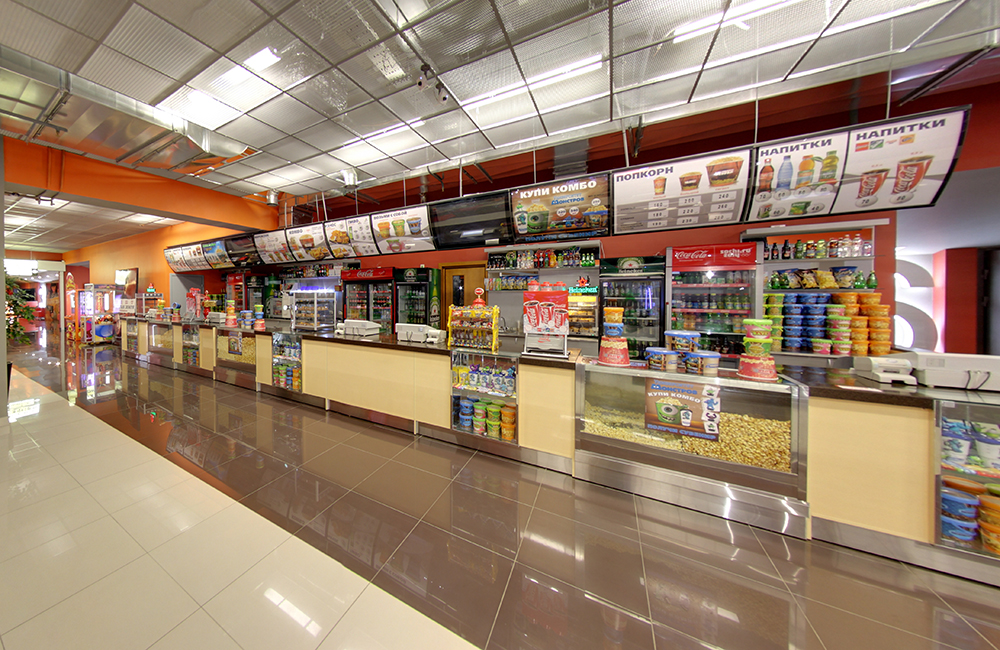 В кинотеатре вас ждут Бар Бистро и Бар VIP с алкогольными напитками (4 вида разливного пива), а также Бар Concession с большим ассортиментом попкорна и оригинальной кухней на любой вкус: Итальянской, Японской, Восточной и Европейской.